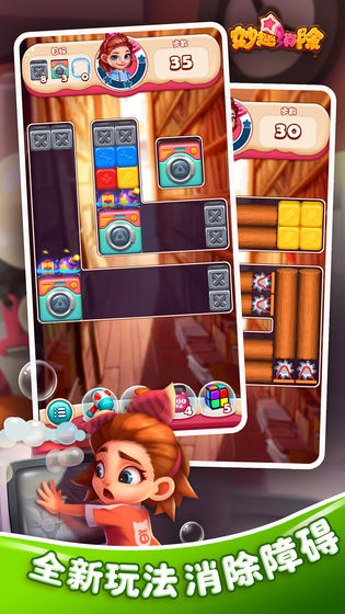 妙趣消除是一款消除类游戏,玩家要控制精灵,在迷宫中解锁宝箱,获得宝物,同时躲避各种危险的怪兽,完成消除任务。游戏中有许多不同的元素,例如宝珠,砖块,或墙等,当精灵碰到他们时,被消除,完成游戏。不仅有传统的消除任务,还有特殊的任务,比如不能让宝珠落入底部空间,以及消除给定数量和类型的元素等。精灵可以升级,拥有更强力的技能,在游戏中拥有更多的能力,让游戏更有趣。