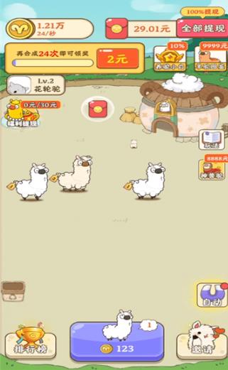 1、玩家可以自由选择不同类型的羊驼和饲料来进行养成,努力升级成长;