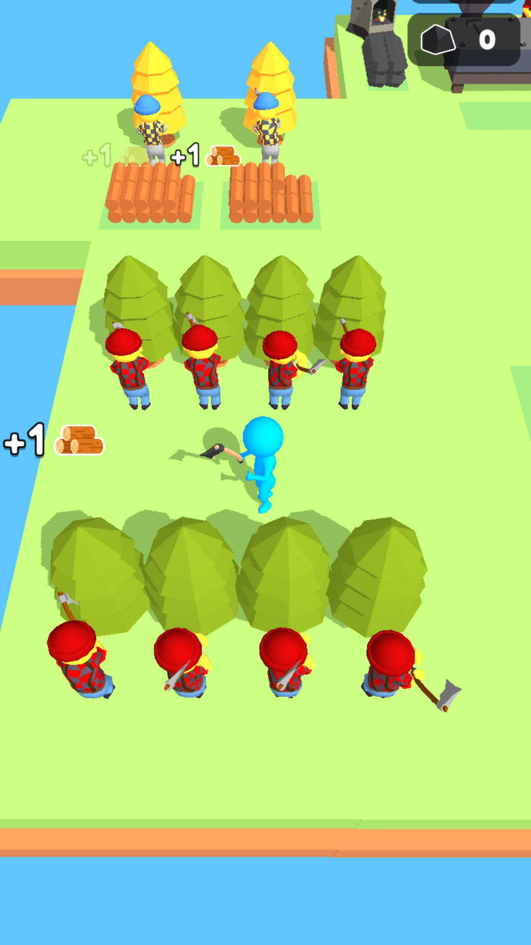 为了可持续地采伐树木,您需要雇用伐木工人来种植森林!购买更多土地来绿化它们!