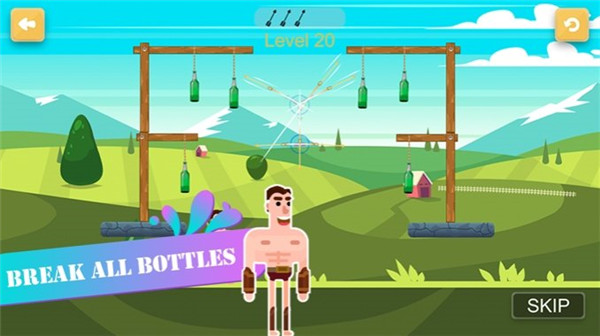 玩家将在游戏中展现自己高超的射箭技术,在游戏的关卡中精准的射击更多的瓶子,这里拥有非常多不同的玩法和模式等你来体验。