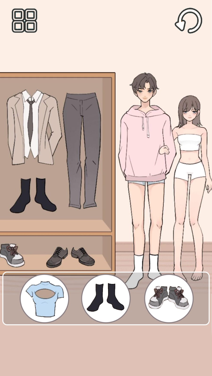 3.有时候玩家还可以帮助角色们搭配情侣服饰,小哥哥和小姐姐都需要你的帮助,成为亮眼的存在!