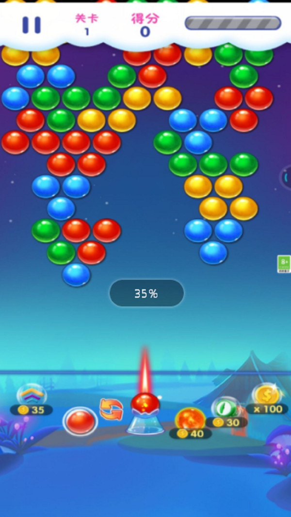 1、轻点屏幕,指定泡泡射击的位置;
