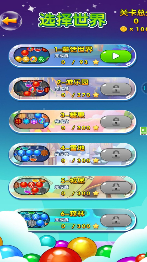 2、七种模式等你来战!童话世界、游乐园、糖果世界、雪地世界、神秘城堡等;