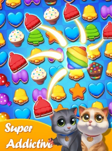 1、在充满梦幻色彩的游戏画面中,进行饼干碰撞对我们的心情有着很好的放松作用。