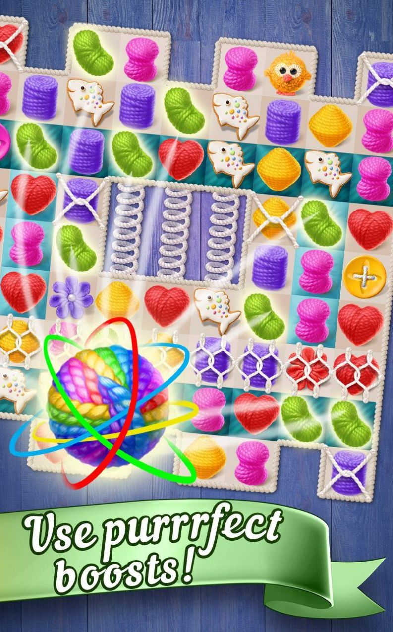 在玩具有新的独特挑战的有趣水平时,放下猫玩具,流行泡泡和收集纱线