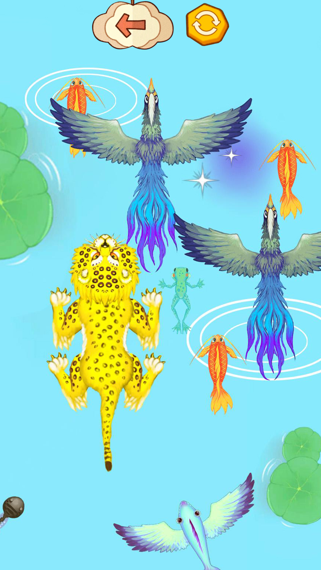 1、根据小鱼在生态圈中的角色变化,选择适合的食物,让小鱼不断成长。