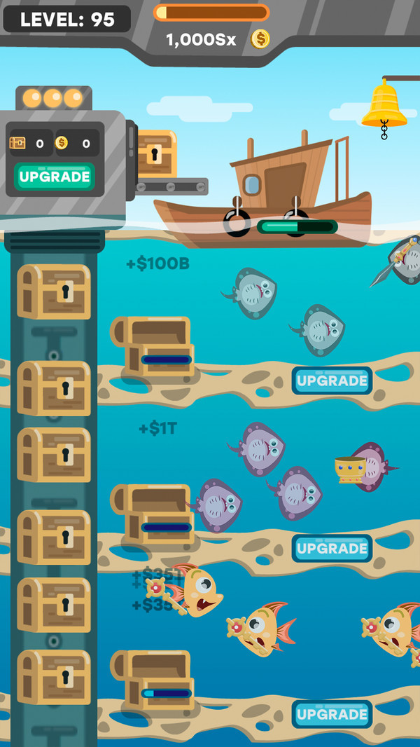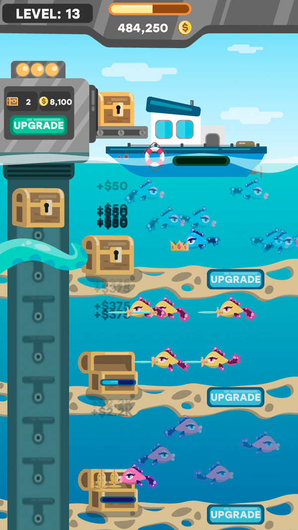 解锁所有工厂级别,最大化游戏级别,并成为地球上最富有的渔夫!