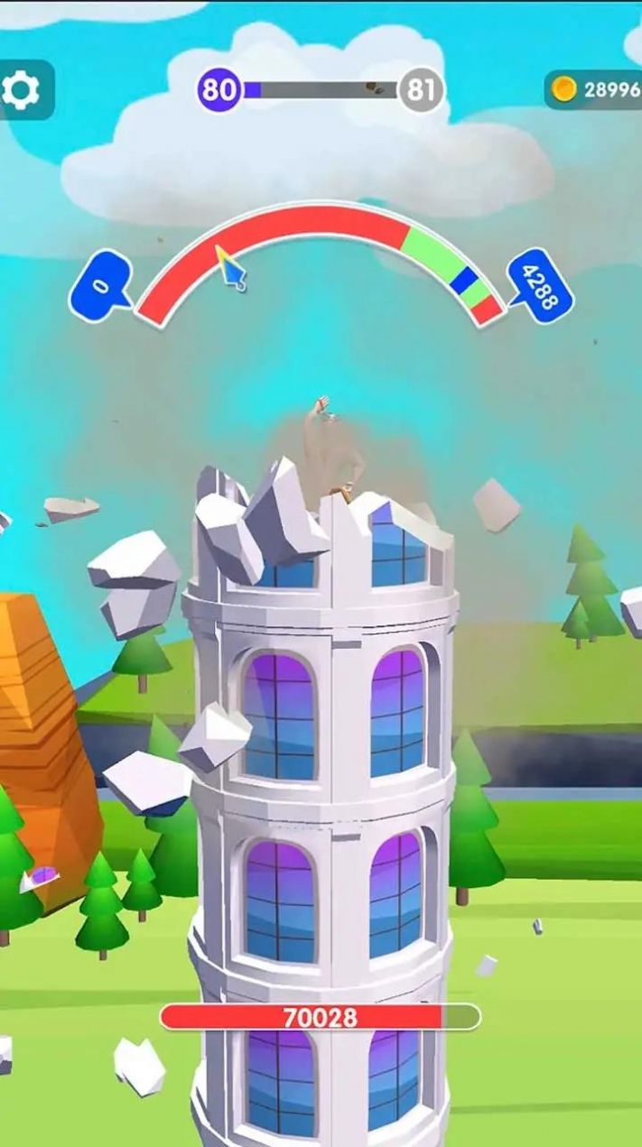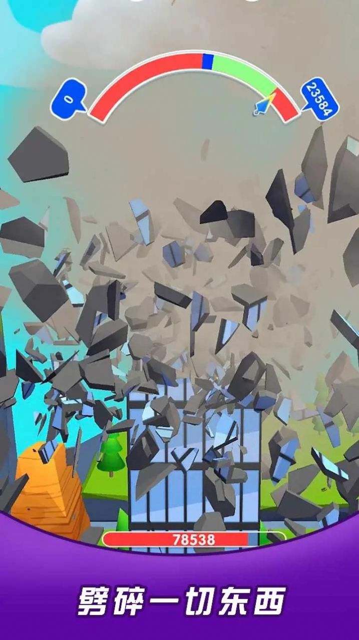 2、您需要在更短的时间内、更高的速度和更多的障碍物中劈碎物品去超越对手;