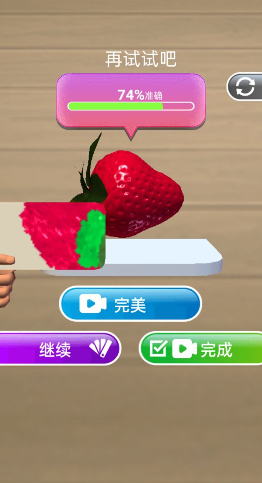 2、然后就是要给水果喷水上色了。颜色越接近目标,得分越高,拍卖价格也越高。这