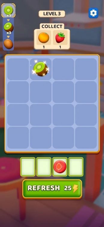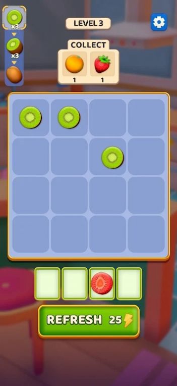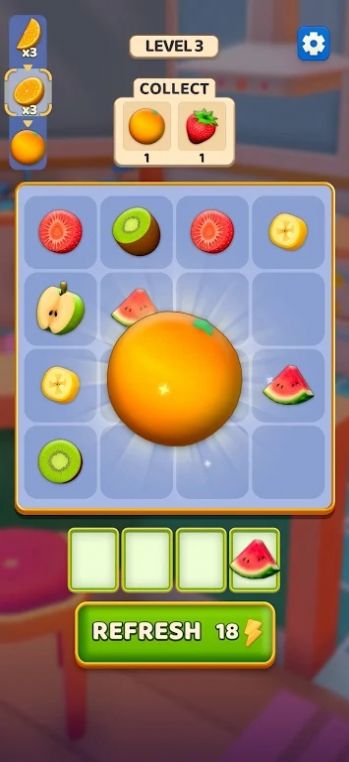 2.可以随意挑战各种消除任务,三种水果可以组合,很容易消除;