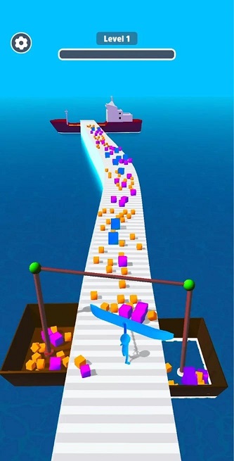 1、画面简约清新,模拟了小人在桥上平衡跑的真实场景。