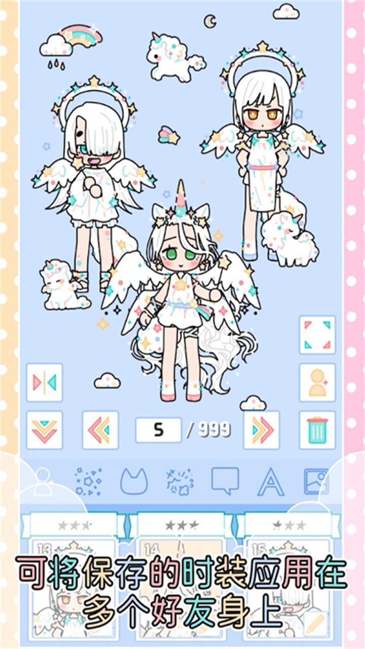 2、丰富的游戏服装饰品等等,游戏设计了很多不同风格的服饰还有各种贴纸,玩家都可以使用,看看会有什么效果;