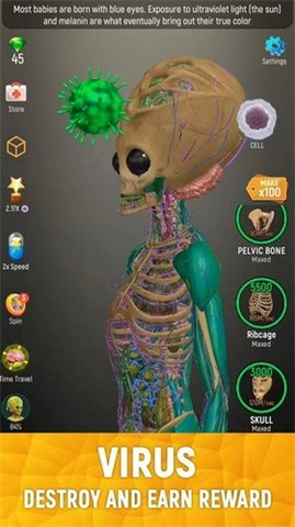 2.从大骨架到小细胞,你将在游戏中体验充满无限神秘感的人体结构;