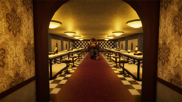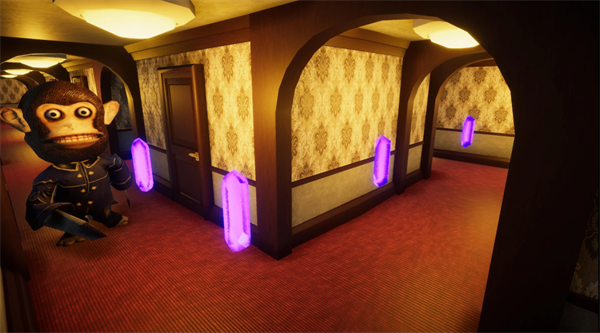 2、在黑暗的房间里进行探险,在拐角处,你可能会遇到一只恐怖的猴子。