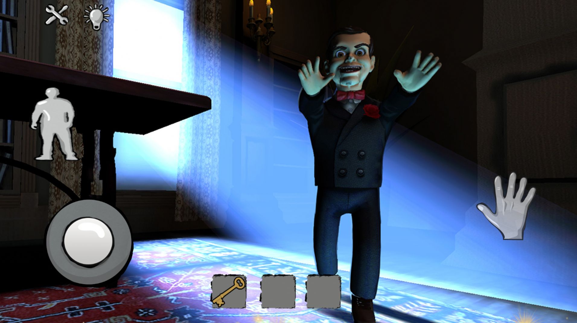 1、相当恐怖的密室逃脱类游戏,整体渲染恐怖诡异的氛围;