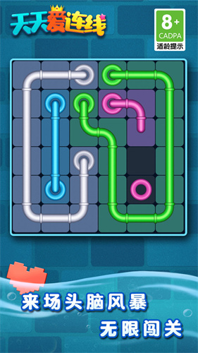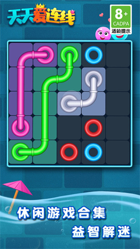 天天爱连线解谜达人是一款休闲益智小游戏,玩家可以通过滑动连接水管,连线不交叉,填满空间方能过关。游戏中有舒缓轻松的音乐,可以为玩家放松心情。动漫卡通的风格使得游戏画面简洁明了,游戏更加丝滑,增强了玩家游戏的体验,简单的操作手法可以让玩家更快地适应游戏并更快上手,众多关卡等待玩家解锁,适合所有玩家进行体验。