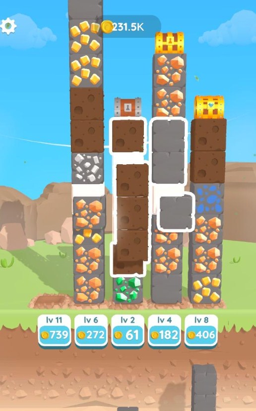 2.以消除的方式挖掘,各种精彩有趣的挑战,能让玩家轻松闯关享受趣味挑战;