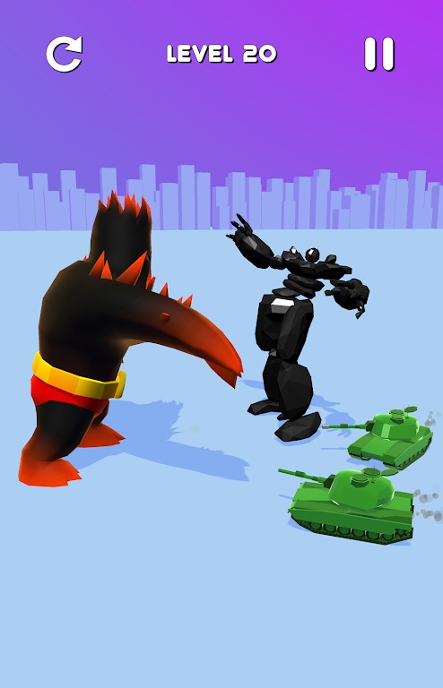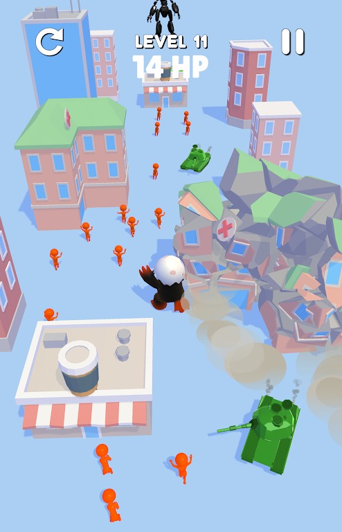 当你吞下敌人并粉碎试图阻止你的坦克时,将你的小怪物成长为一股不可忽视的力量!这个城市不够两个怪物,所以赢得boss战来统治它!
