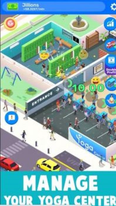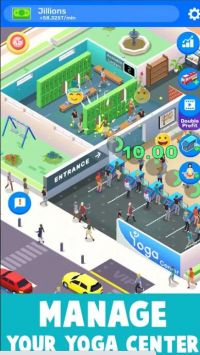 1、卡通画风,增加游戏乐趣,繁华都市,经营专属瑜伽店。