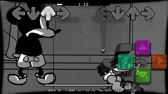 米老鼠(模组)中新增了米老鼠人物,玩家可以在这里和米老鼠一起跟随着音乐节奏舞动。fnf米老鼠(模组)玩法经典,操作难度是随着歌曲节奏不断变化的。玩家可以在这里自由的挑战,看看自己是否拥有音乐天赋。