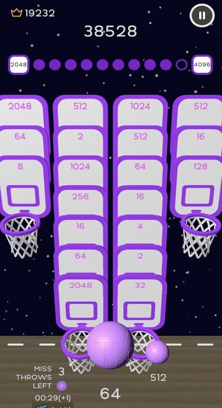 超级灌篮2048是一款休闲闯关类游戏,融合了不同的竞技玩法和多种元素,能够将数字模式与篮球竞技元素完美地结合在一起,带给玩家更多独特的游戏体验,需要不断地凭借着自己的大脑智慧,将所有篮球上的数字快速的合成,就可以带给你更多的奖励,也能够帮助你快速地投入到相应的篮框中,挑战更多就独特性的方式和内容,可以让玩家的实力不断的得到提升。