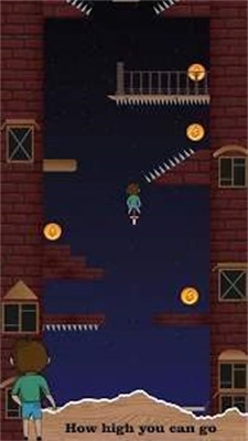 1.玩家的操作方法就是控制小人,让他进行不断的跳跃,最终跳到顶端就能获得游戏的成功。目标很简单。
