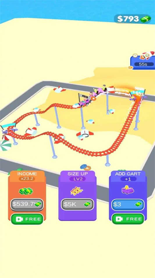 空闲疯狂过山车这款游戏体验起来特别的真实,游戏还给玩家带来了具有节奏的音乐背景,让玩家可以跟着节奏在游戏里面进行驾驶,而且游戏里面还有不同的道具,玩家都可以获得,让自己体验起来更加轻松。