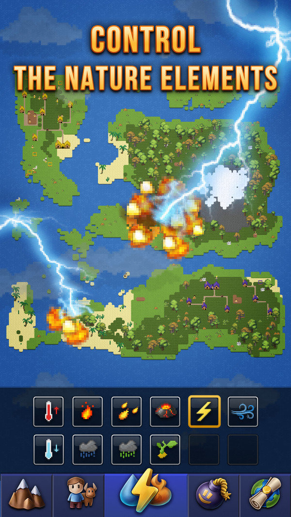 上帝之手创造世界是款模拟经营类游戏,在这款游戏当中玩家将成为这个世界的造物主,我们可以根据每个行星的特点来制作出不同的星球,像素的风格让玩家有着更好的游戏体验,我们能够使用各种天灾!快来这款游戏当中来体验成为上帝的乐趣吧!