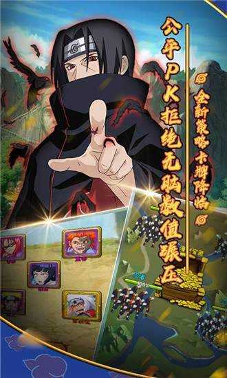 守护木叶村是一款以热门日漫火影忍者进行改编的卡牌对战手游,在守护木叶村手游中玩法自由简单易上手,玩家需要建立属于自己的忍者小队,不断的战斗升级提升自己的实力,培养更多的忍者人才,感兴趣的小伙伴们赶快来下载吧!我在守护木叶村手游等你呦!火影迷一定不要错过这款游戏!