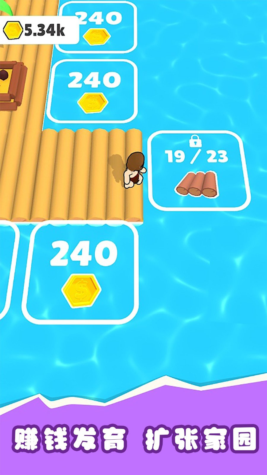 2、不断开启新的冒险任务,展现你的生存能力,完成最后的挑战,快速增加你的木筏体积。