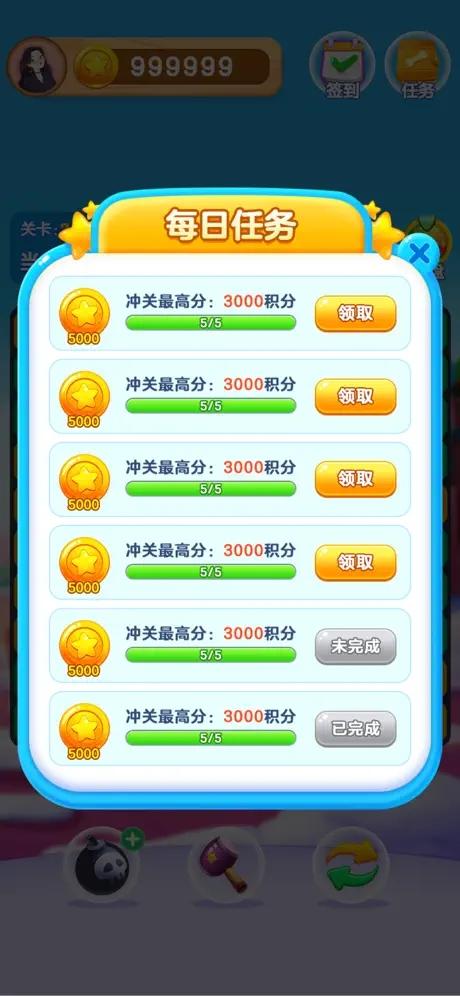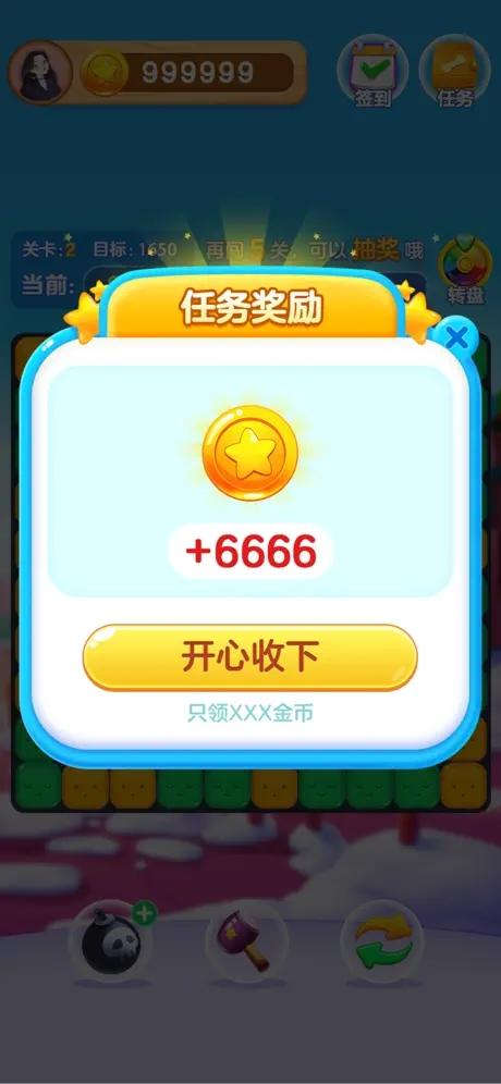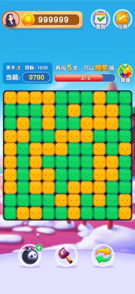 在闯关的时候如果一次性消除方块比较多的话,就能获得上千个金币奖励,是不是特别惊喜呢,如果我们在限时活动登录这款手游的话,是赠送无限精力值的,再也不用担心会浪费机会了,可以自由的玩转多个不同的关卡,是个打发时间的神器,快来加入我们吧。
