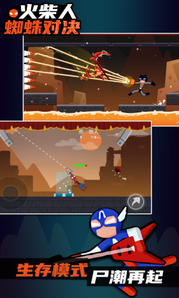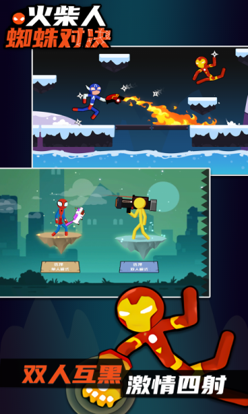火柴人蜘蛛对决游戏中以近身格斗为主,各种酷炫的冷兵器都可以供玩家使用,比如盾牌,剑等等。游戏中的战斗模式以射击为主,玩家会操作简笔画进行近距离射击;玩家的敌人是简笔画,他来自敌人的另一边,拥有和玩家简笔画相似的能力。玩家要多加小心。不断与对手展开最精彩的搏击,用娴熟的操作躲避对方的攻击。