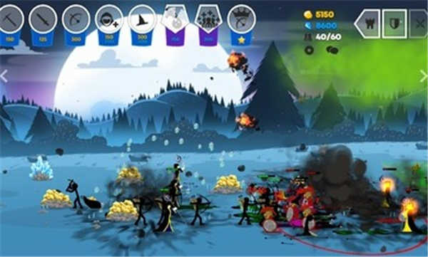1、模式多样化,而且还有不同的火柴人兵种有着不同的的力量。