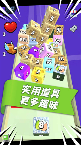 3、撞击合成新玩法:你可以通过撞击相同数字的方块进行合成,注意特殊数字方块,需要撞击特殊次数才能被合成哦,3D立体的赛道让游戏难上加难!