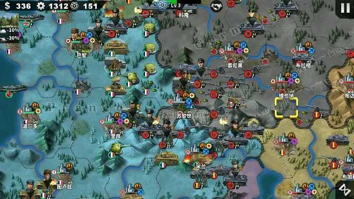 3、32场历史战争,3个难度等级,150个军事任务。