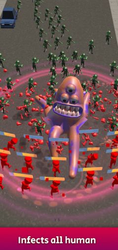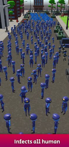 僵尸人群感染是一款充满趣味性的休闲闯关类游戏,这款游戏的玩法没有太复杂,玩家需要在游戏中操控着一个丧尸,通过在闯关过程中掌握一定的战术,才能够将出现的各种对手全部消灭掉,简约的游戏画风加上简单的游戏规则,让玩家在游戏中能够玩的得心应手。