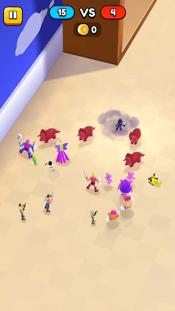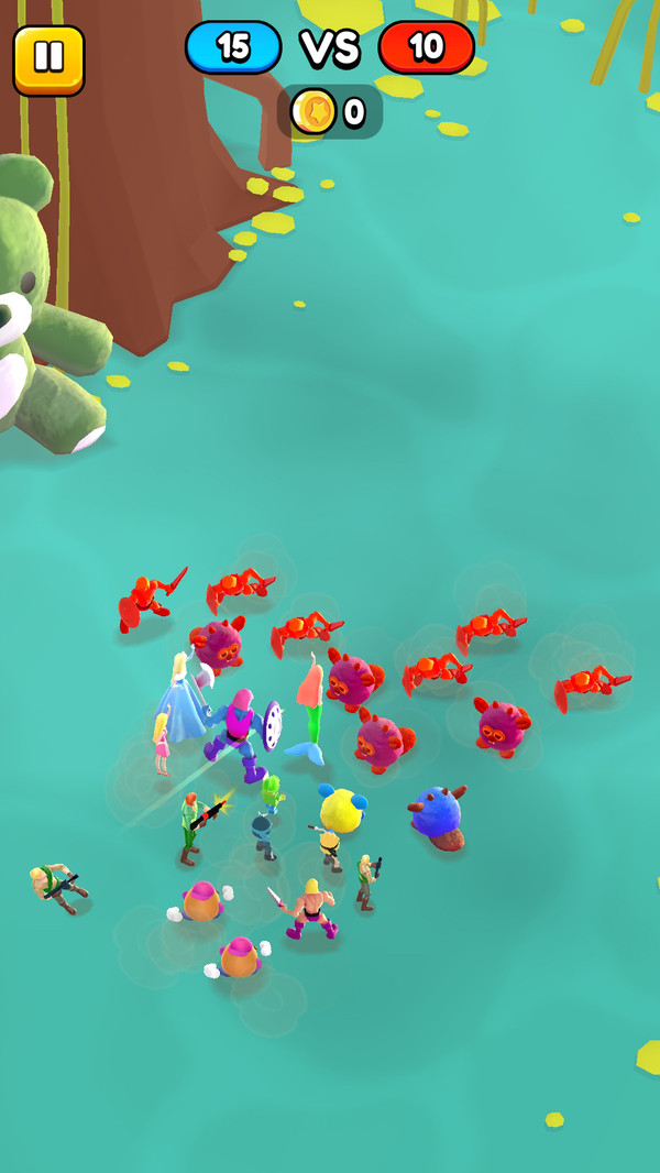 1、发育打团模拟器玩家只需求点击屏幕召唤和控制他们的玩具来战役和攻击。