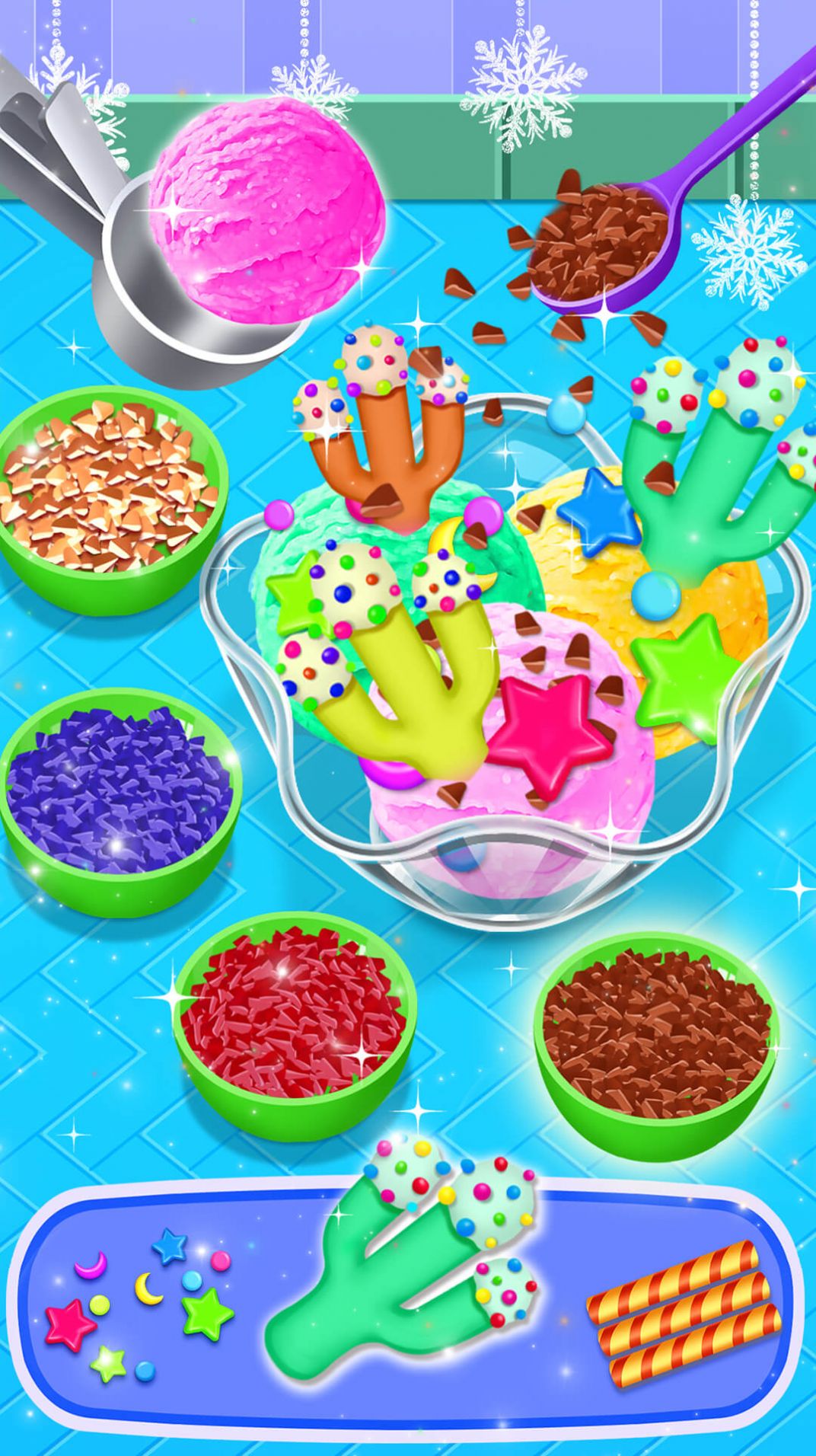 2、制作冰淇淋,会获得星星奖励,用于升级和获得更高层次的奖励;