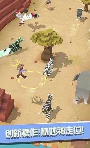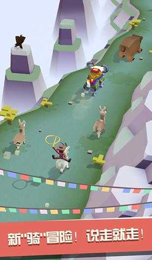 松开手指后,主角便会跳起,再次按下手指,就能跳到套索覆盖位置的动物身上,继续奔跑。