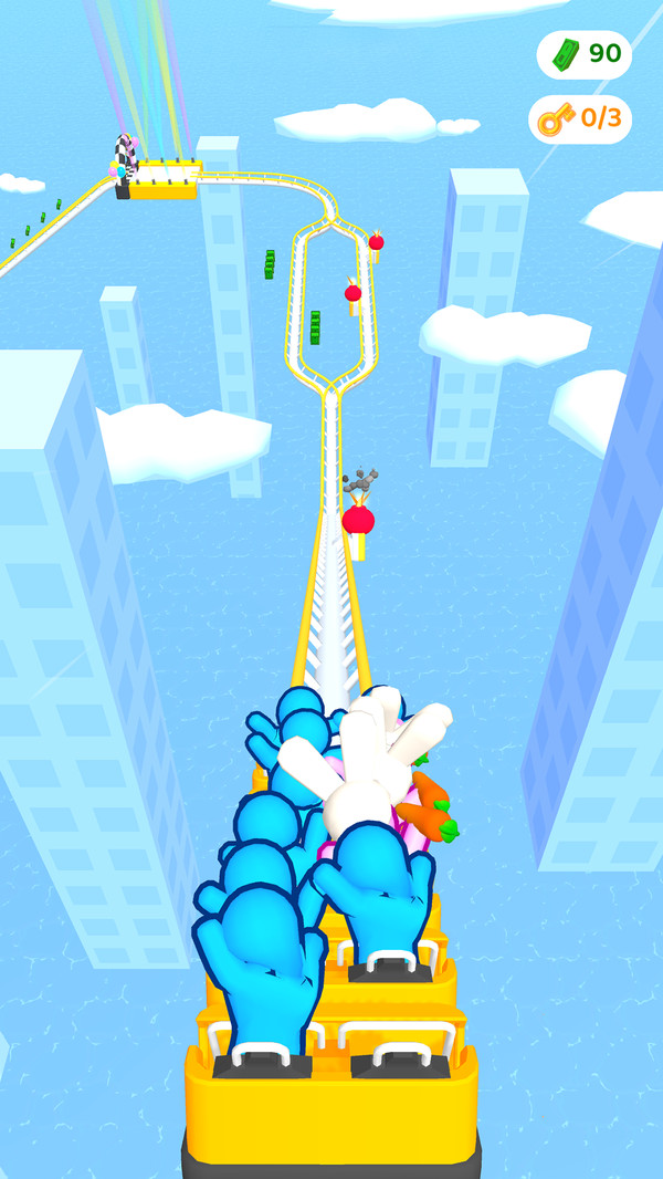 2.不仅要收集更多的橡皮人,还要控制过山车的方向,收集更多的绿色钞票和道具;