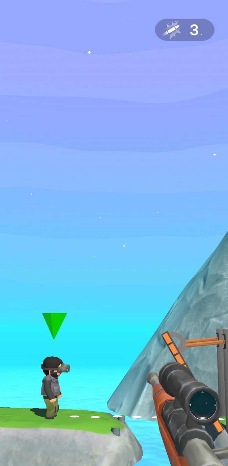 3、山顶上有许多用棍棒支撑着的石头。使用狙击枪折断树枝,让石头落在敌人身上,成功掩护队友。