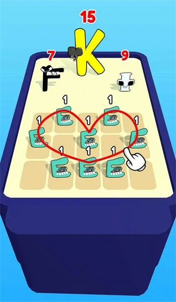 1.在闯关的过程当中玩家需要观察好里面每一只字母怪物的形状和颜色,这样才能够更好的进行合并。