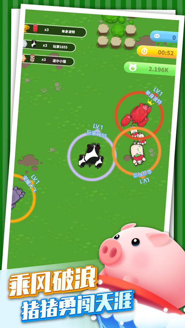乘风破浪的猪游戏玩起来非常的有魔性,你将扮演可爱的猪猪,与其他的玩家开启惊险刺激的冒险战斗,谁的猪猪阵营更庞大,实力也会更加的强大,而且还能不断的进化,体型和战斗力都会增强,让你在战斗的时候更具优势,分分钟就能收获丰厚的奖励哦!