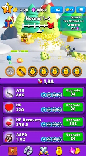 1.在丰富的地图场景当中,能大胆的展示史莱姆角色。
