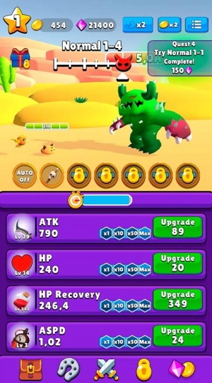4.灵活使用道具和技能,让史莱姆角色能变得更强大,能成功迎接更大的挑战。