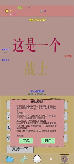 抵抗吧史莱姆内置菜单版,来到文字世界,玩家只是一直最弱小的史莱姆,不过为了强大起来,还得完美的对抗,无数的魔物都可以击败的,boss也可以击倒,奖励都能获得,让史莱姆的等级上去才行,抵抗吧史莱姆值得你体验。