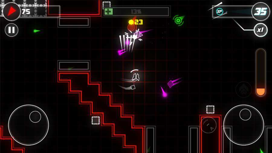 涡轮飞行器是一款简单有趣的休闲类飞行射击游戏。非常简洁的黑色作为游戏画面的背景,玩家只需要简单控制操作飞行器,就可以对敌人和设置的障碍物进行攻击消灭。同时来完成各种关卡的任务目标,得到更多精良华丽的武器装备,提高战斗攻击力。