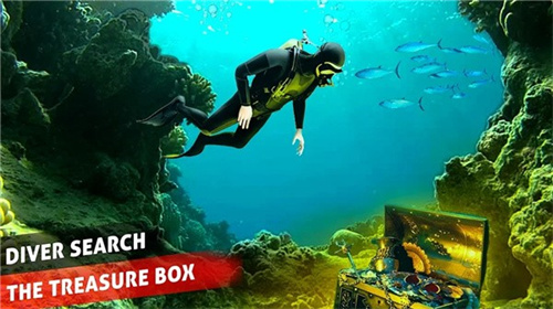 2、水肺潜水员游泳宝藏做好深海潜水探险的准备,开始寻找沉船金箱,乐趣多多。