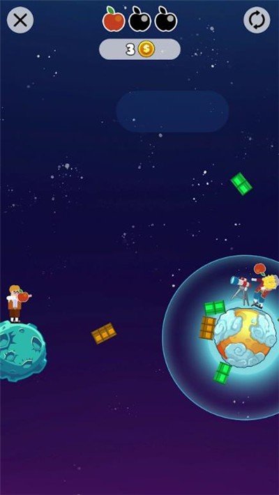 控制着你手里的小人发送出让人惊艳的苹果,用苹果恰好砸中牛顿。