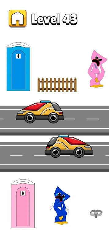 厕所运行之拼图是一款非常有趣的休闲益智游戏,这款游戏的内容是比较搞笑的,能够为玩家们营造一个非常轻松的游戏氛围。玩家需要在游戏中画出一条距离最近的线路,这样才能够让里面的人物角色以最快的速度到达到洗手间中,同时也能够获得很高的游戏分数。
